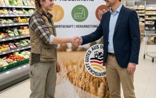 Bildnachweise: Bildbanner Header: yanadjan – stock.adobe.com; Bild Fleischtheke: contrastwerkstatt – stock.adobe.com; Bild Apfelernte: Carmen Steiner – stock.adobe.com; Bild Pilze: Olha Afanasieva – stock.adobe.com, Bild; Frau Einkauf: Art_Photo – stock.adobe.com
